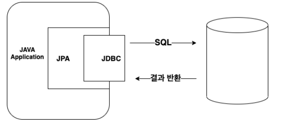 애플리케이션과 JDBC사이에 동작하는데 JPA를 사용하면 JPA내부에서 JDBC API를 사용하여 SQL호출하여 DB와 통신