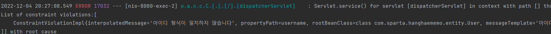 @Pattern(regexp = "[a-z0-9]*$",message = "아이디 형식이 일치하지 않습니다")