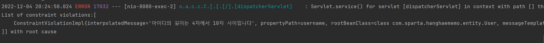 @Size(min = 4,max = 10,message ="아이디의 길이는 4자에서 10자 사이입니다")